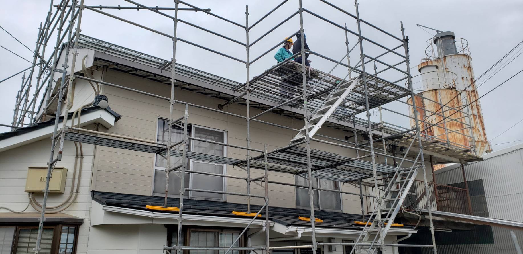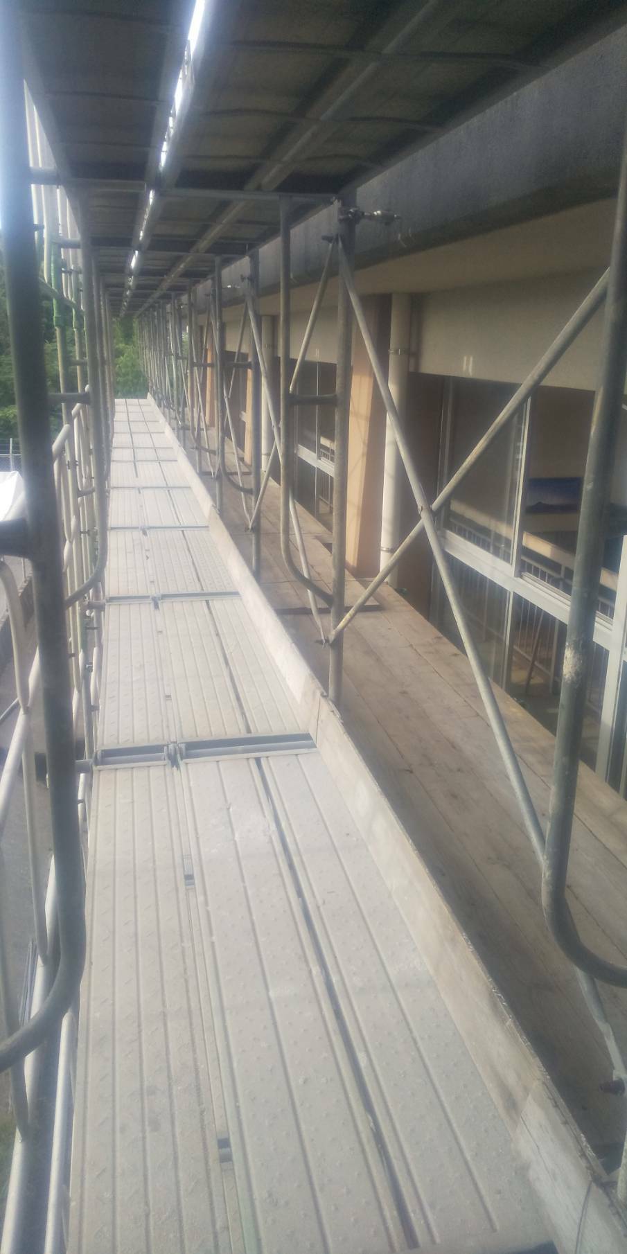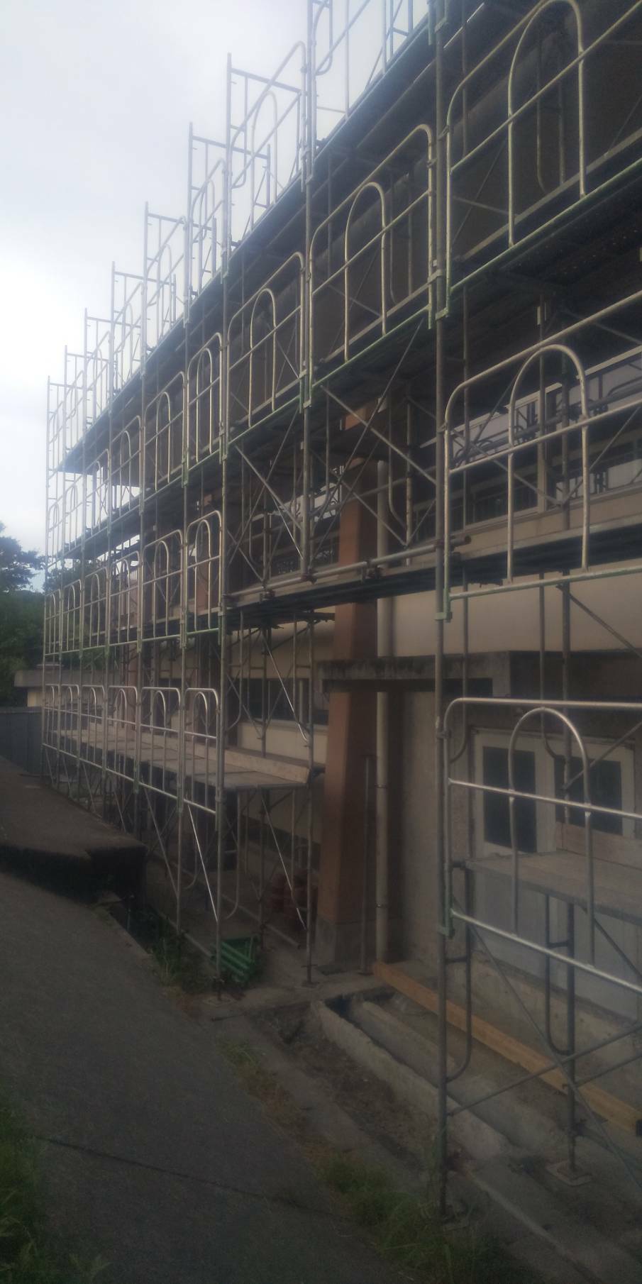 お盆に入りました。お盆前に小学校の足場架設始まりました。とにかく暑いので、熱中症対策はかかせません。水分補給、食べたくなくても食事をとるなど、気を付けなければいけません。作業着にファンがついている物を着ている作業員もいます。えらいです。自分自身で気をつけてもらわなければ、何かあってからでは遅いです。早く涼しい季節になってほしいなぁ~。。。写真は小学校で組んだ足場です。皆いつもありがとう。感謝です。